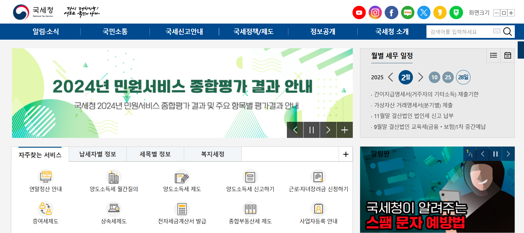 | 정기 신청 | 2024년 연간 소득 | 2025년 5월 1일 ~ 5월 31일 | 8월 말 | 근로소득자, 사업소득자, 종교인 소득자 |